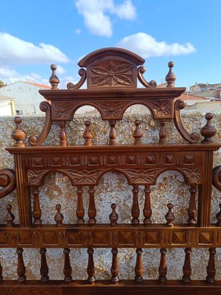 Se vende cama individual de madera vintage con un diseño clásico y elegante. Buen estado 606467718 - Fabricada en madera. - Acabado en tono marrón oscuro. - Medidas:190x90. - Incluye somier. cama,cama 90, somier, somier 90, vintage, antigua, cabecero, piesero