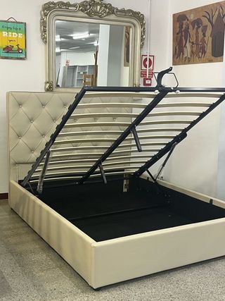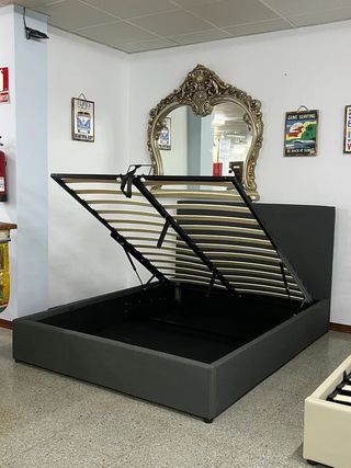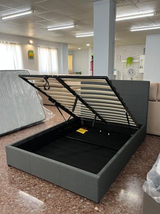 Cama con almacenamiento nueva, también conocida como cama canapé Aprovecha el espacio al máximo con esta práctica cama de dormitorio. Incluye garantía de fábrica. 🚚 Envíos disponibles. Ideal para pisos, casas y apartamentos.