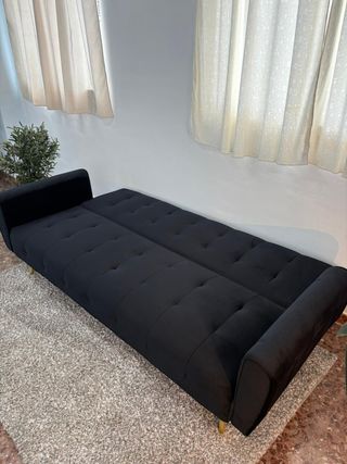 Sofá cama moderno y elegante, ideal para cualquier espacio. No tiene ningún desperfecto - Diseño capitoné. - Acolchado confortable. - Patas metálicas plateadas.
