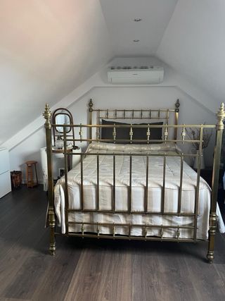 Estructura de cama antigua, completamente hecha de latón y bronce. - Diseño clásico y elegante. - Materiales de alta calidad.