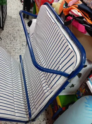 Cama plegable con colchón, ideal para invitados. Su diseño permite guardarla fácilmente. - Estructura metálica. - Colchón con funda de tela a rayas.
