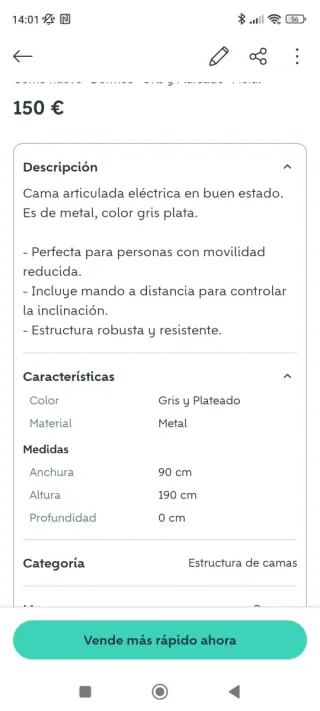 Cama articulada eléctrica en buen estado. Es de metal, color gris plata. - Perfecta para personas con movilidad reducida. - Incluye mando a distancia para controlar la inclinación. - Estructura robusta y resistente.