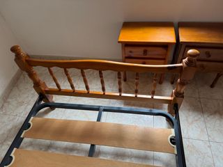 Conjunto de cama madera de nogal (135cm) maciza más dos mesitas con encimera de marmol original