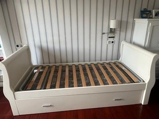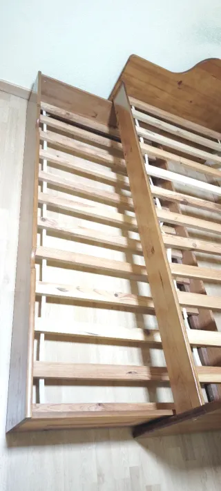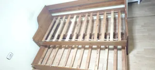 Cama nido de madera con somier de 90cm. - Estructura robusta de madera maciza - Diseño clásico. Semi desmontada