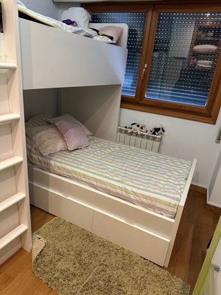 Se vende litera alta de Ikea con cama inferior. - Medidas de la cama superior: 90x200 cm. - Incluye cama inferior con cajones. - Incluye colchones Esta montado