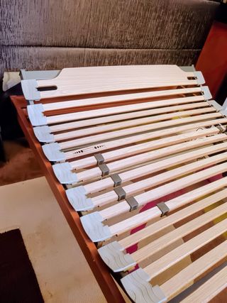 Canapé hierro acerado para una plaza amplia de 1.05. Fotos hechas en casas y en pisos de clientes. A mostrar en Vigo - Gran capacidad de almacenamiento, más de 30 cm de alto dentro del cajón :- El canapé está hecho en hierro acerado de un buen perfil y calibre en cajón y en tapa - Tapa muy reforzada con 5 barras transversales de hierro acerado - Es el canapé mas transpirable, más fiable y resistente. - Totalmente adaptado para colchón matrimonial de 2 plazas viscoelastico Precio final puesto en Vigo con tapa de hierro acerado muy reforzada y tapizada en telas 3D, opción de tapa multiláminas serían 35 más dobre este precio final