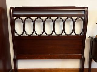 2 unidades. Elegante cabecero de cama de madera con un diseño clásico. - Acabado en tono marrón oscuro. - Detalles ornamentales en forma de óvalos. - Estructura robusta y duradera.