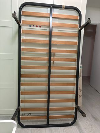 Somier de láminas para cama individual. - Estructura metálica. - Láminas de madera.