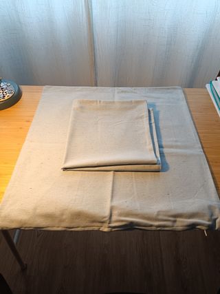 Retal de tela con un diseño de cuadros clásico en tonos beige y verde. Ideal para proyectos de costura y manualidades. - Diseño a cuadros. - Combinación de colores beige y verde. Tamaño: 90cm x 100cm