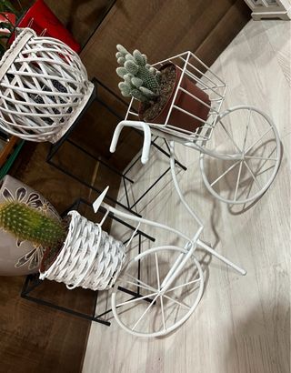 Original soporte para plantas con forma de bicicleta. - Diseño decorativo. - Ideal para macetas pequeñas. - Disponible las dos