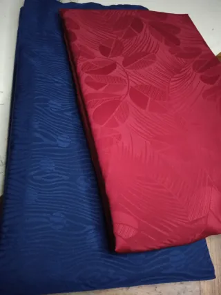 Precio por ud!!!! Se venden restos de rollos de tela con bonitos diseños. - Tela azul con estampado de ondas y círculos. - Tela roja con estampado de hojas y ramas.