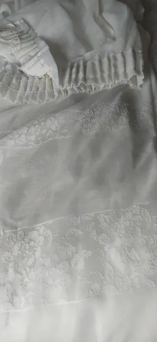 Visillos blancos con un diseño delicado y elegante. Añaden un toque de estilo a cualquier habitación. - Tejido ligero y traslúcido. - Detalle de bordado floral en varias franjas. - Acabado con cenefa de encaje en la parte superior. Medidas: Alto 2'30; ancho, dos cortinas de 1'80(3,60) Con frunce y ganchos que se pueden adaptar, como para ventana de 2'50-2,75 ancho. El alto se puede modificar moviendo los ganchos hacia arriba o tb.en la parte de abajo con la vainica.