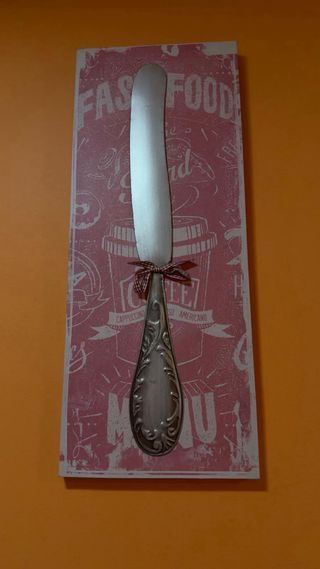 Juego de 4 cuadros con cubiertos en chapa ideales para decoración de comedor, cocina o restaurante... muy originales y vistosos En perfecto estado