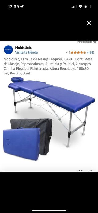 Camilla de masaje o estética Camilla de masajes profesional en perfecto estado, ideal para fisioterapeutas, masajistas o uso doméstico. Estructura robusta y ligera, fácil de transportar y montar. Tapizado cómodo y resistente, con acolchado ergonómico para máxima comodidad durante las sesiones. Medidas estándar, ajustable en altura, perfecta para todo tipo de tratamientos.Se entrega limpia y lista para usar. Precio negociable, disponible para entrega inmediata. ¡Aprovecha esta oportunidad para mejorar tu espacio de trabajo o tu bienestar en casa!