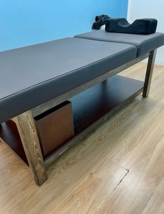 Camilla acolchada en muy buen estado, estable y cómoda. Ideal para cetro de masajes, estética, tatuaje, fisioterapia o consulta privada. Superficie amplia y acolchada, fácil de limpiar. Respaldo regulable. Se vende por no usar. 📍 Entrega en mano.
