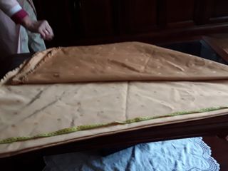 Dos fundas de mesa camilla sin apenas uso. Están en perfecto estado. Medidas: Azul turquesa diámetro 191 cm, aprox. Teja diámetro 212 cm, aprox Precio de las 20 €.