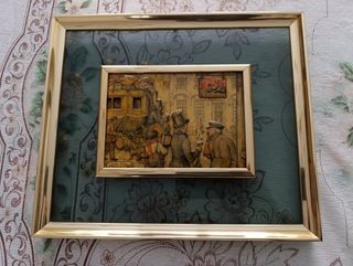 Cuadro con cristal tamaño medio está sobre una mesa de camilla en las fotos