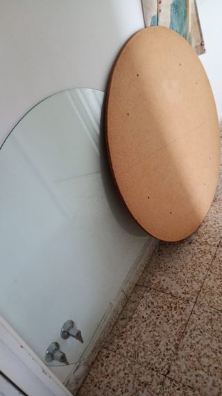 Tablero redondo de 100 cm de diametro para mesa camilla junto con su cristal. - Tablero de madera. - Cristal transparente.