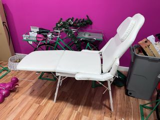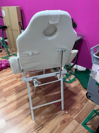 Camilla de clínica estética, para manicura, depilación, masajes, etc necesita reparación y algo de retapizado. Más cosas en mi perfil