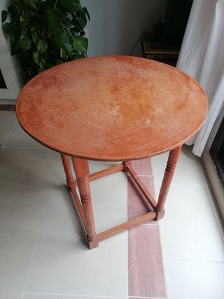 Mesa de camilla pequeña redonda, mide 60cm de circunferencia y 64cm de alta.