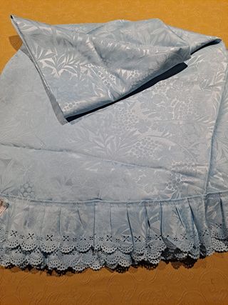 Falda camilla 75cm. alto x 90cm. Diámetro ø tela raso 100% poliéster color Celeste. 240cm. diámetro total... Artículo nuevo de fábrica. Rebajado, por liquidación. Baja y cierre negocio) (“Negocio cerrado.” Solo hacemos envíos, por Wallapop.)