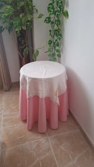 Falda de mesa camilla redonda de 90. Hecha a mano No llegué a usarla Precio negociable OFERTA 25€