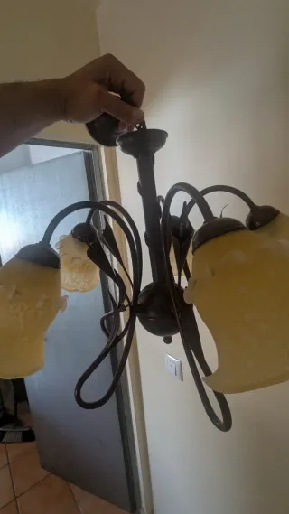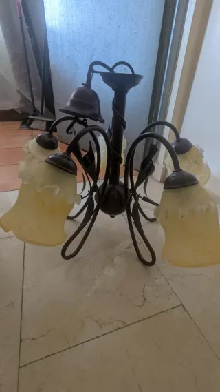 Lámpara de hierro forjado con tulipas