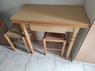 Mesa cocina madera 80x40 abierta 80x80.taburetes