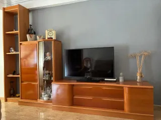 OCASIÓN por reforma. Muebles de alta gama en MADERA DE CEREZO natural (nada de kit). Estado impecable. LOTE COMPLETO (6 piezas): Aparador Comedor (4 cajones/puertas) Espejo mural a juego Vitrina Alta cristal/madera Vitrina Media combinada Mueble TV con ruedas Smart TV Samsung 50" 4K (Apps: Netflix, Disney+) PRECIO LOTE: 1000€ valorado en +3000€). Escucho ofertas razonables por lote completo. Lote Comedor: 350€ | Lote TV+Samsung: 650€. Ubicación: Canals (Valencia). Recogida a cargo del comprador¡Calidad para toda la vida!