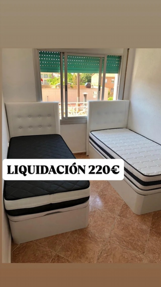 Liquidación en camas, canapés, sofás y armarios por cierre de outlet. Ultimas unidades, no pierdas la oportunidad! 💵 Se paga al recibirlo, contrareembolso. 🚚 Repartos diarios. ⏩ Precios Pack canapé y colchón: - 90x190 cm a 250€. - 105x190 cm a 280€. - 135x190 cm a 295€. - 150x190 cm a 305€. - 150x200 cm a 380€. - 160x200 cm a 510€. ▪️Posibilidad de comprar por separado canapé o colchón. ▪️Consultar por chat sin compromiso.