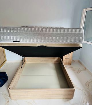 LIQUIDACIÓN CON TRANSPORTE GRATIS! Camas nuevas a estrenar — Calidad premium, canapé madera eco alta capacidad + tapa 3D Somieres, bases tapizadas, cabezales, sofás, armarios, almohadas.. --Colchón viscoelástico 24/29 cm con doble cara invierno e verano, firme y adaptable, Antiácaros, hipoalergénico, 100% transpirable 🎨 Colores: Blanco, Cambrian, Wengué, Cerezo, Ártico PACK Canapé + Colchón : • 150x190 → 305€ • 135x190 → 285€ • 105x190 → 275€ • 90x190 → 260€ Solo Canapé • 150x190 → 205€ • 135x190 → 195€ • 105x190 → 185€ • 90x190 → 179€ 📏 Otras medidas disponibles: 120, 140, 150, 160, 180 x 190/200 Pago contrareembolso ☑️