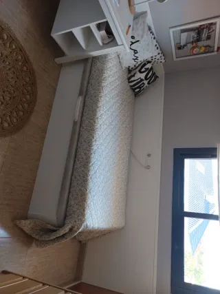 Canapé de 90x190 cm en perfecto estado hay que desmontarlo. - Color blanco. - Medidas: 90x190 cm. Estructura de melanina y base de tela