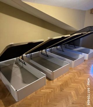 CANAPE con tapa con barras reforzadas con una madera completa en la base transpirable con válvulas anti humedad forrada con tela fibra 3D con maneta para la apertura esquinas redondeadas Colchón de VISCOELASTICA anti estrés doble cara verano invierno transpirable anti ácaros anti humedades de 25cm de grosor. Canapés nuevos a precios asequibles! Medidas: 90×190 cm 160€ 105×190 cm 175€ 120×190 cm 175€ 135×190 cm 175€ 150×190 cm 180€ 150×200 cm 210€ 160×200 cm 240€ 180×200 cm 290€ COLORES : blanco, cambrian, wengue artico . Pago contrareembolso