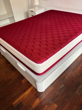 Vendo colchón 195x140 con dos caras (Visco + Látex), usado muy poco en un dormitorio de invitados. Sin manchas, sin olores y sin hundimientos. Incluye canapé abatible 195x140 con estructura metálica y gran capacidad de almacenamiento. Todo en excelente estado. Comprados en 2023 y con garantías aún vigentes: • Colchón: núcleo 5 años, tejido 3 años • Canapé: estructura 5 años, revestimiento 3 años