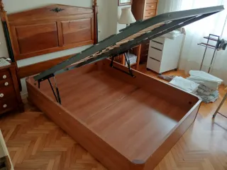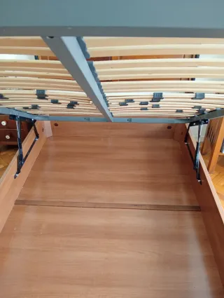 Base de cama tipo canapé abatible, ideal para aprovechar el espacio de almacenamiento. - Estructura de madera. - Mecanismo de elevación metálico.