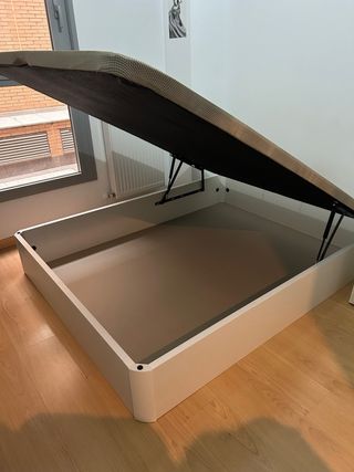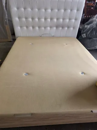 Se vende conjunto de cama compuesto por canapé y colchón. No comprado en tienda lowcost. - Canapé con base de tela y estructura de plástico. - Colchón con tejido de grafeno.
