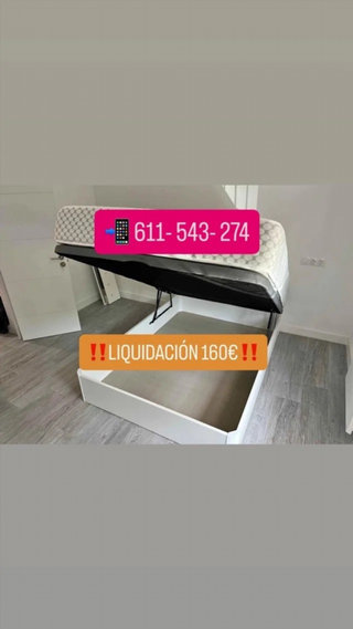 ¡Últimas unidades! Precios increíbles. 💥 Diseño resistente + gran capacidad interior. Precios (canapé / con colchón): 90×190 — 145 € / 220 € 105×190 — 150 € / 245 € 120×190 — 155 € / 250 € 135×190 — 155 € / 255 € 150×190 — 160 € / 265 € 160×200 — 220 € / 380 € 180×200 — 270 € / 440 € Envío 24H, transporte gratis, montaje 20 €, pago contra reembolso. Pregunta por fotos o vídeos reales.