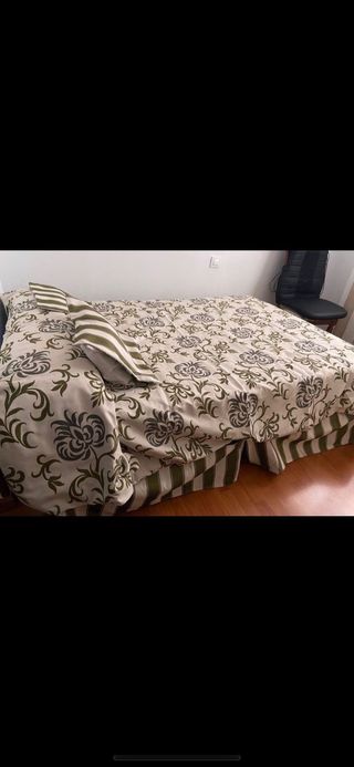 Para cama, 1,35. Funda nordica, 3 cojines cunre canape y doble cortina. Muy buena tela. Hechas a mano