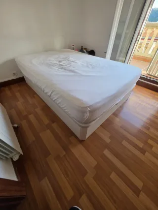 Base tapizada de Flex (Tapiflex transpirable) para cama de 160x190 cm. Proporciona una superficie firme y uniforme para tu colchón. - Diseño moderno y elegante. - Patas de acabado madera resistentes color haya Tiene 8 años y esta muy bien. La superficie que toca al colchón no tiene manchas como se ve en la segunda foto. Lo cambio porque quiero poner un canapé abatible para poder guardar cosas.