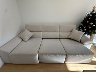 Chaise longue muy cómoda y amplia, con tres plazas de 80 cm cada una y módulo largo tipo relax, perfecta para leer, ver series o echar la siesta totalmente estirado. Tapizada en tela Aquaclean original, que permite limpiar la mayoría de manchas solo con agua, ideal para casas con niños, visitas o uso intensivo. Ancho zona de asientos: 3 módulos de 80 cm Fondo chaise longue: 160 cm Altura del asiento: 57 cm Profundidad asiento recogido: 55 cm Profundidad asiento extendido: 98 cm Altura total con respaldo: 89–100 cm aprox. Brazo: ancho 30 cm, alto 64 cm, largo 108 cm (150 cm con asiento salido) Incluye canapé integrado.