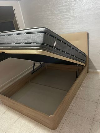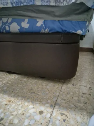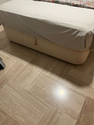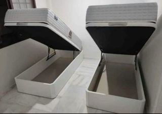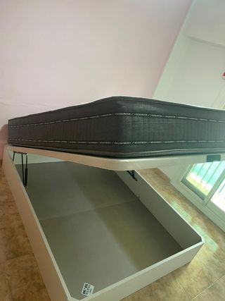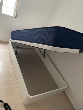 Vendo cama completa arcón canapé y con colchón incluido si se quiere, el somier dependiendo del peso de la persona hace algún ruido porque es un artículo usado, el arcón con somier hidráulico tiene un fondo con dos compartimentos para almacenaje, la tapa es el propio somier. No tiene patas, el desmontaje y traslado tiene que estar preparado por el comprador, no puedo ayudar al traslado ni al desmontaje porque no tengo los medios necesarios. Las medidas del arcón completo son 198,5cm de largo y 113,5cm de ancho y las medidas del somier y colchón son 105cm de ancho y 190cm de largo. El comprador tiene que traer los medios.