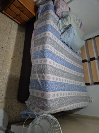 Se vende conjunto de cama canapé abatible y colchón. - Medidas: 1.05 metros de ancho por 1.90 metros de largo. - Estructura del canapé en madera. - Colchón cómodo y en buen estado.