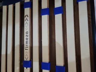 Somier de láminas de madera y estructura metálica, diseñado para encajar dentro de un canapé. Urge vender. Se le puede poner patas - Medidas: 135x180 cm. - Láminas de madera. - Marco de metal.