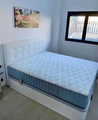 Tiene 3 años, está nueva, en perfecto estado. La compré por 800€ y la vendo por una mudanza. Colchón y almohada de buena calidad (la almohada es de las que se adapta a tu cabeza). El colchón al estar usado tiene una mancha pero se ve solo de cerca y además se le pone la funda protectora de colchón y listo!