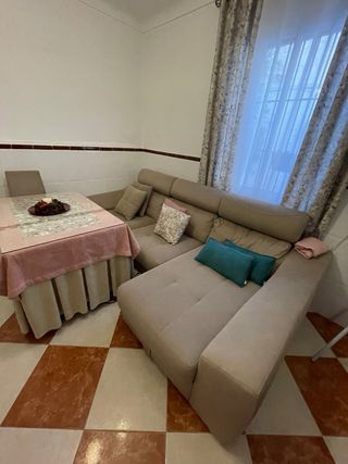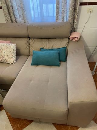 Canapé abatible de 190x80 cm en tonos beige y marrón. Está en muy buen estado. - Sistema de apertura fácil. - Amplio espacio de almacenaje. - Muy poco uso, se vende por falta de espacio. - Mínimo desgaste (ver últimas fotos) causado por moverlo. - Precio nuevo más de 400€.