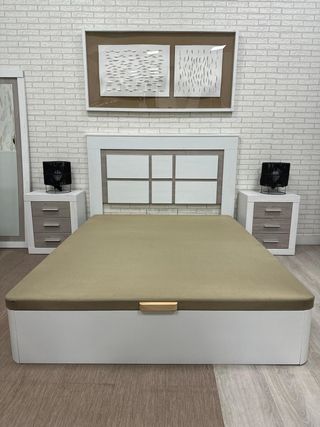 Cama con canapé, ideal para maximizar el espacio de almacenamiento. - Estructura de cama con base abatible. - Diseño moderno y funcional.