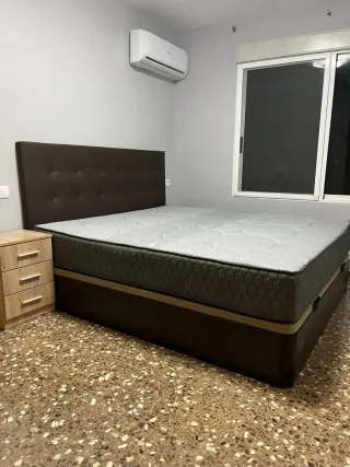 cama economica base tapizada/canape / colchón. - Base de color marrón. -Canape 4 colores a elegir -colchon viscon 24,26,28, 30 cm 🚛TRANSPORTE Y MONTAJE DISPONIBLE⚒️ ⚠️⚠️TODO COMPLETAMENTE NUEVO⚠️⚠️ 🤝PAGO AL RECIBIR EL PRODUCTO🤝 📲614489378 PEDRO📲PREGUNTAR SIN COMPROMISO - Colchón con detalles en gris.