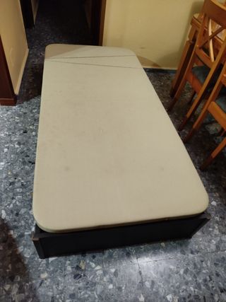 Vendo canapé abatible. De madera color wengué y tapizado en color beige Medidas: Ancho 90 Largo 190 Alto 37