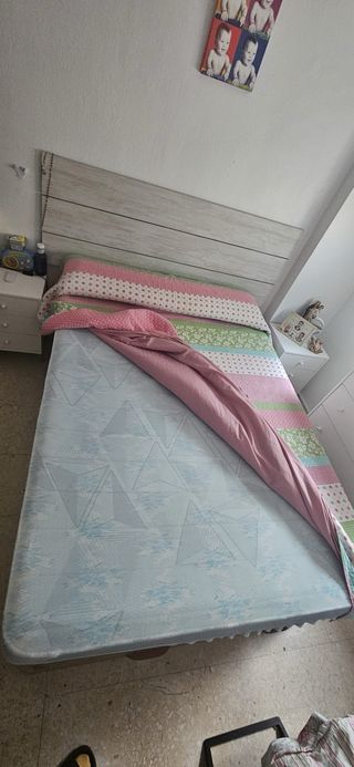 Se vende canapé y colchón en muy buen estado, con poco uso. - Estructura del canapé de madera. - Colchón con funda de tela.