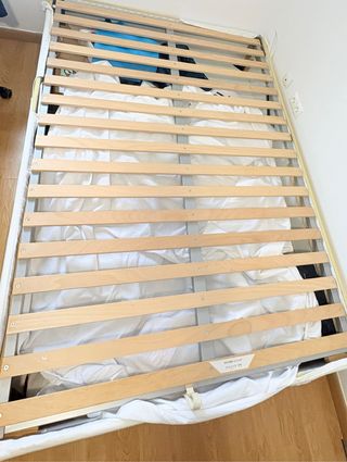 Base de cama tipo canapé con estructura de madera y metal. - Listones de madera. - Marco metálico.